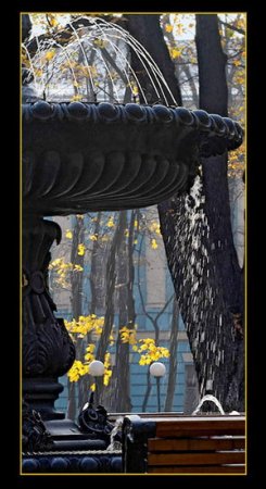 Зелёная вода уснувшего фонтана,-